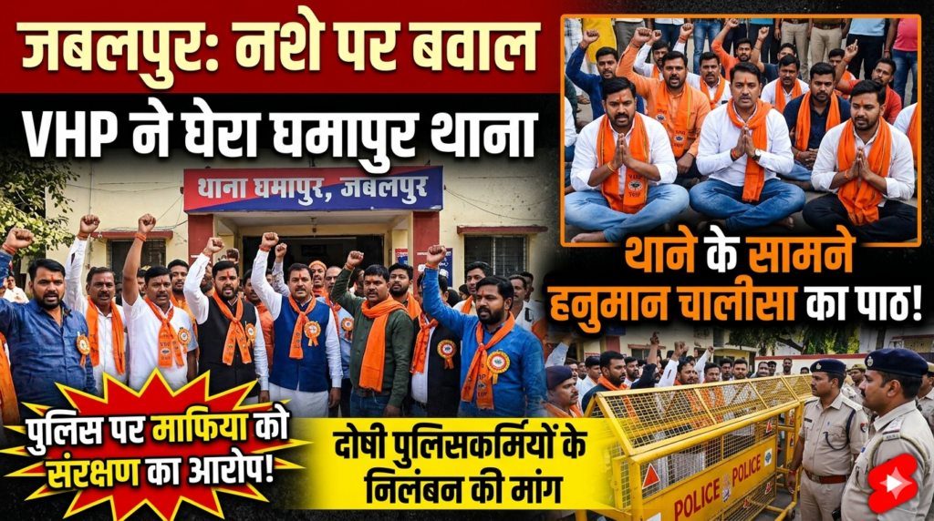 जबलपुर में नशे के कारोबार पर बवाल, VHP ने घमापुर थाने का घेराव किया और पुलिस पर शराब माफियाओं को संरक्षण देने का आरोप लगाया