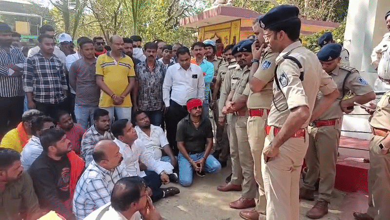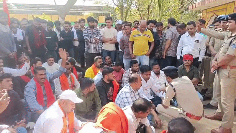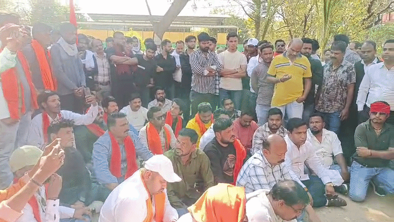 प्रदर्शन के बीच एक अलग तस्वीर भी दिखी। कार्यकर्ता थाने के सामने जमीन पर बैठ गए। इसके बाद सभी ने मिलकर हनुमान चालीसा का पाठ किया। उन्होंने इसे शांतिपूर्ण विरोध बताया। उनका कहना था कि यह लड़ाई समाज को बचाने की है।