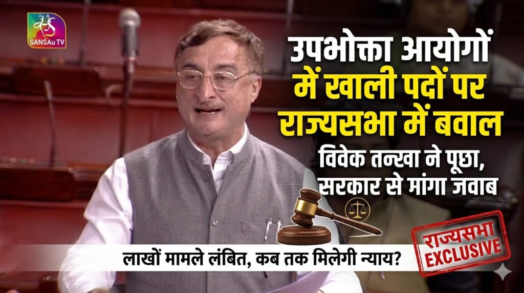 राज्यसभा में कांग्रेस सांसद विवेक तन्खा ने उपभोक्ता आयोगों में खाली पदों का मुद्दा उठाया। उन्होंने कहा कि देशभर में लाखों मामले लंबित हैं और आयोगों में अध्यक्ष व सदस्यों की कमी से सुनवाई प्रभावित हो रही है। सरकार से पूछा गया कि इन पदों को भरने के लिए क्या कदम उठाए जा रहे हैं।